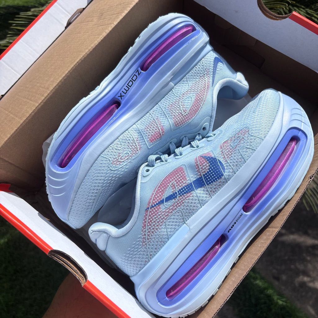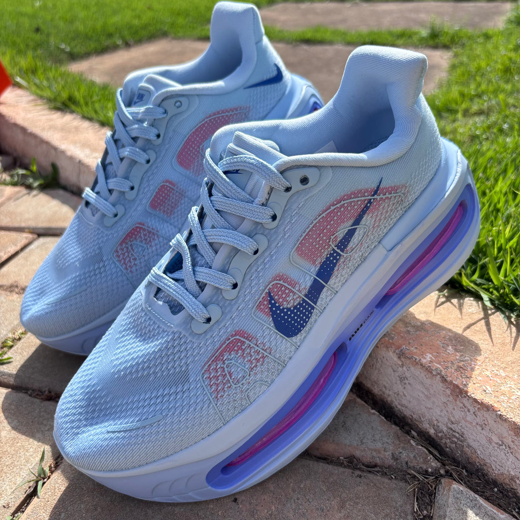 Ele conta com duas unidades Air Zoom (antepé e calcanhar) envoltas por espuma ZoomX de compressão suave, promovendo retorno de energia e conforto prolongado.